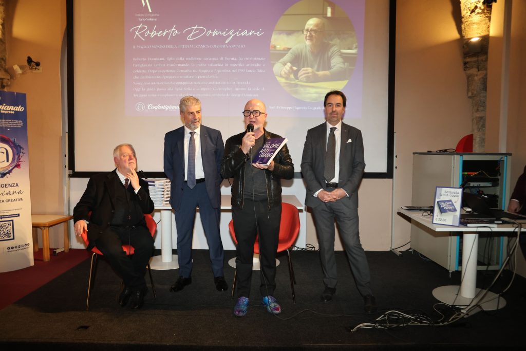 Il giornalista Giuseppe Magroni, autore dei testi, e il fotografo Alberto Mirimao, che ha scattato le foto presenti nel libro, hanno spiegato al pubblico il processo di costruzione delle storie, l’intervista, corretta, limata, integrata; il tempo impiegato per scattare le foto, per cogliere l’attimo, l’aspetto che rendesse bene, che cogliesse l’essenza della persona protagonista della storia e del suo lavoro, del laboratorio, dell’officina, del negozio in cui opera.